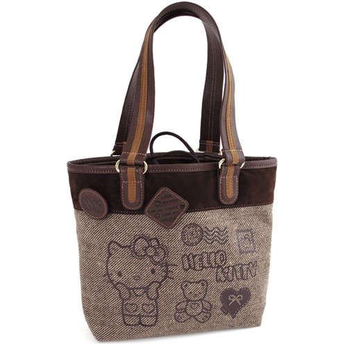 Petit sac shopping Tweed brun Hello Kitty By Camomilla En Tweed, Finitions imitation cuir Une poche zippée à l' intérieur Sérigraphié Très belle qualité Hauteur hors anse : 21 cm Largeur base : 22 cm Profondeur : 9 cm