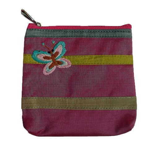 Belle brodé à la main porte-monnaie en soie avec détail papillon à l'avant. Fermeture à glissière. Soie doublée. Fait main au Vietnam par des fabricants éthiques. Taille W11cm H11cm D1cm