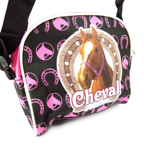 Idée cadeau tendresse avec les chevaux et ses symboles : adorable sac à main bandoulière arrondi "Passion Chevaux". Sac en toile. 17. 5x15x6 cm. [Ref. K5366]