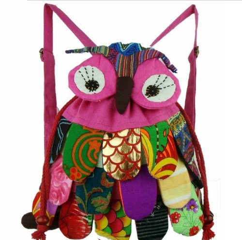 Aolevia Aimable Sac à Dos En Coton Sac à Main Dessin de Hibou Style Chinois Parfait Pour Enfant-Rose