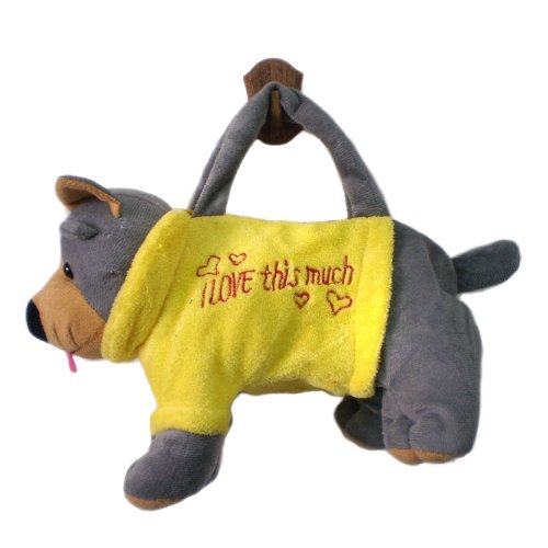 Y-BOA - Sac Pochette à Main Peluche - Gris Chien - Enfant/Adult - Trousse à Crayons/Ecole/Maquillage/Scolaire